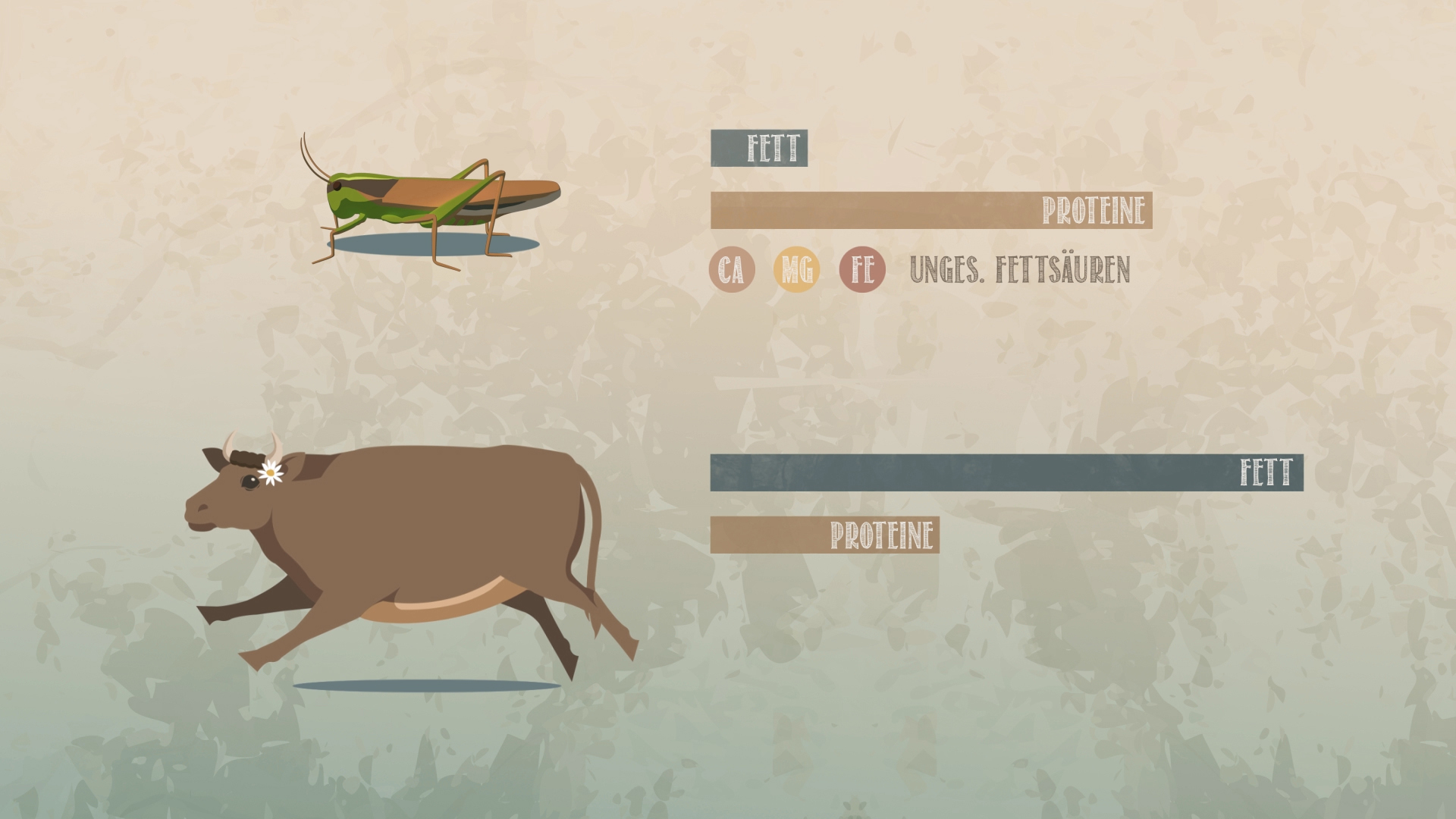 Das Dschungelcamp hat es uns vorgemacht. Insekten sind essbar und eigentlich auch lecker, jedoch sind sie als Nahrungsmittel in westlichen Kulturkreisen eher negativ behaftet. Deshalb haben wir uns mit dem Potenzial dieser meist sechsbeinigen Nahrungsmitteln beschäftigt. Anhand eines informativen Films rund um den Ursprung, der Verbreitung und der Entwicklung der Entomophagie führen wir den Betrachter an das Thema heran. Mit charmanten 2D und 3D Animationen erleichtern wir dem Zuschauer den Blick über den eigenen Tellerrand.