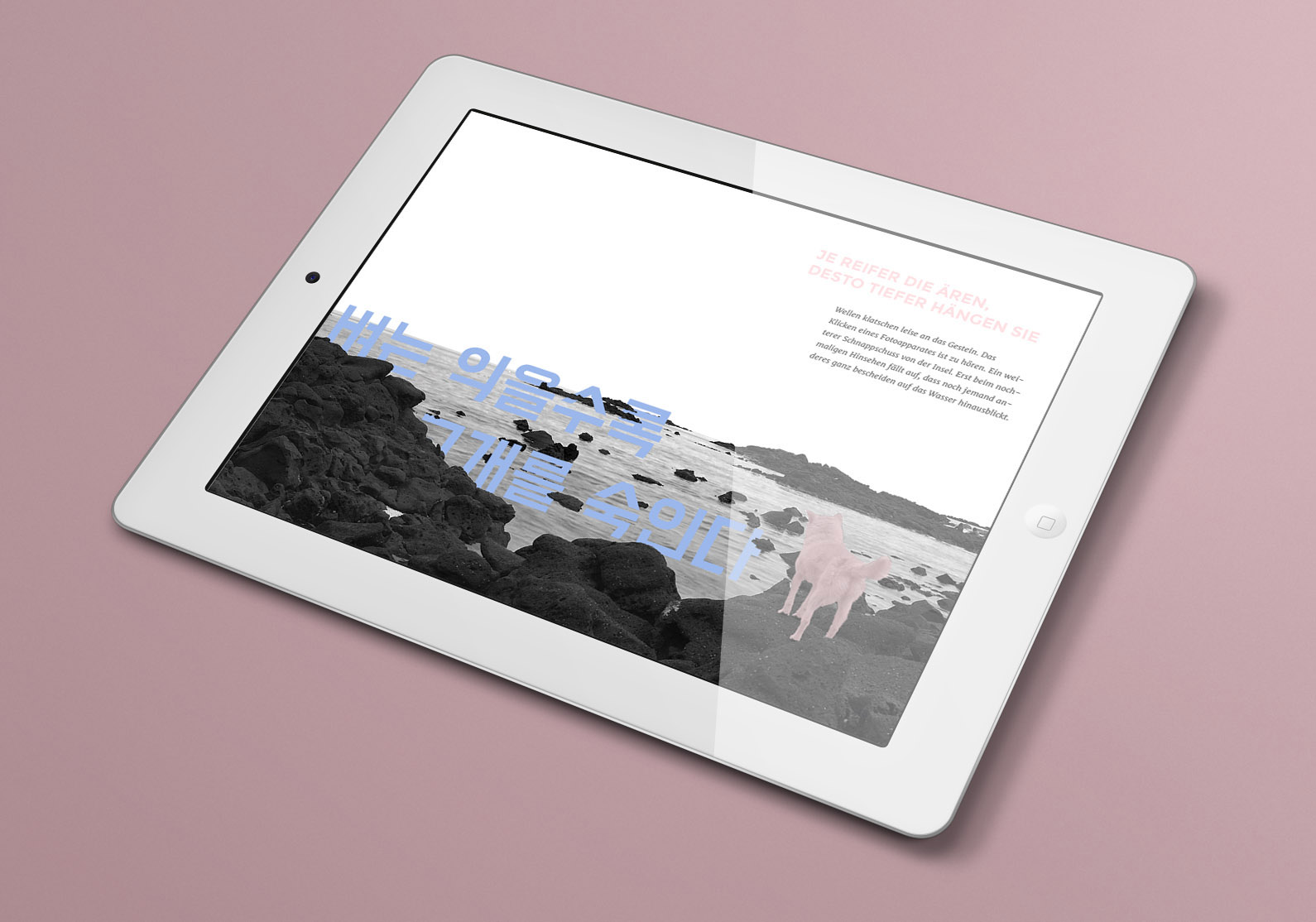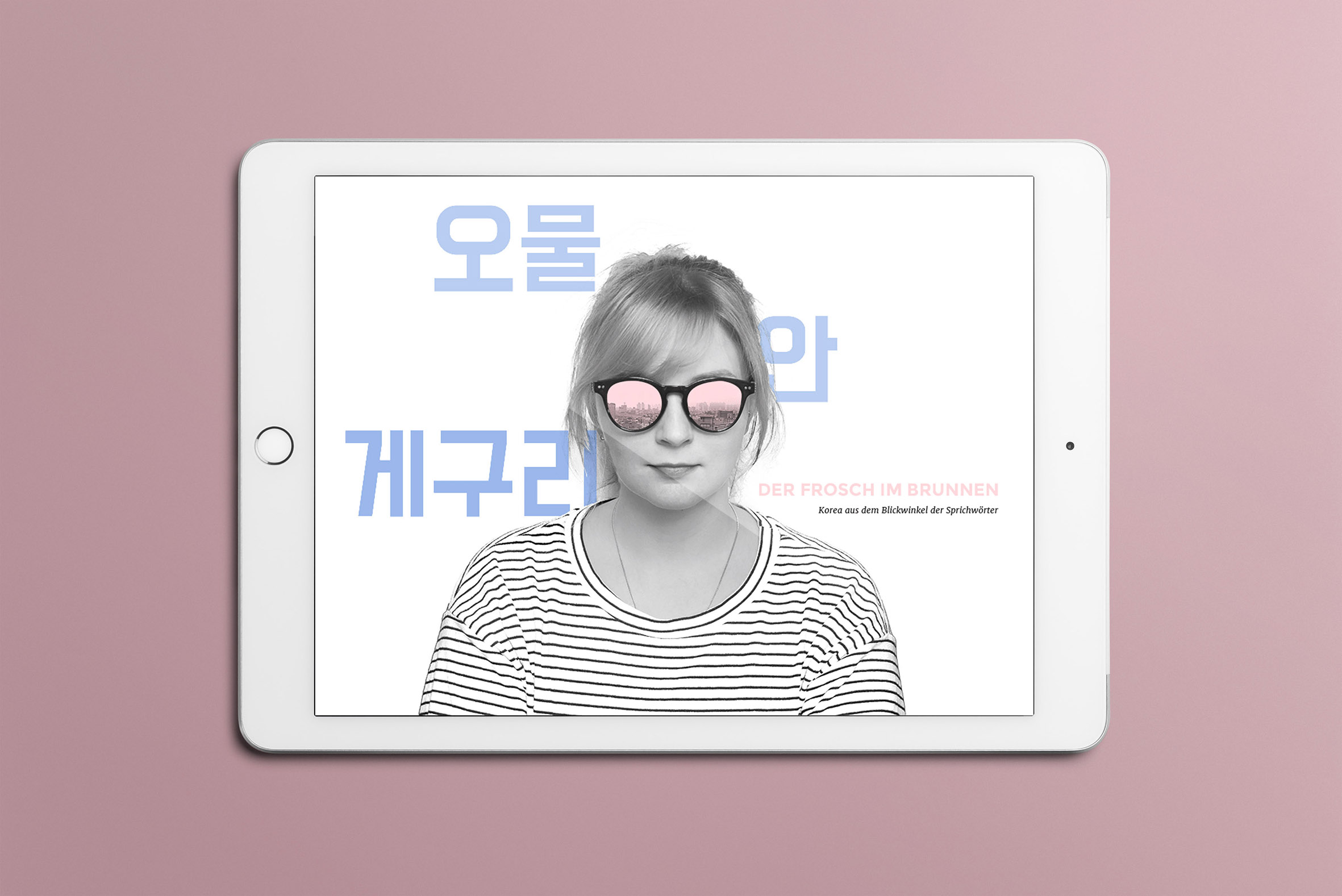 „The Frog in the Well“. This title might be confusing at first glance. However, this is the direct translation of a Korean proverb that means something along the lines of “having a small horizon”. My Bachelor thesis deals with how my horizon expanded through my exchange semester in Korea. To communicate this appropriately I created an animated ebook about Korean proverbs and their meaning. The proverbs are highlighted by suitable animated photographs.
