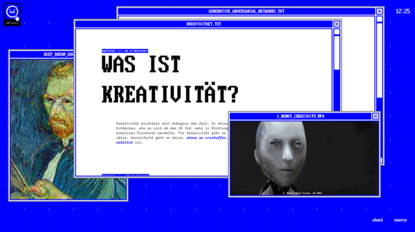 Künstliche Intelligenz ist eine Technologie, die dabei ist viele Aspekte unseres Lebens zu beeinflussen. Sie hat in den letzten Jahren Gemälde im Stil berühmter Künstler erzeugt, Symphonien für ganze Orchester komponiert oder Fahrzeuge im Straßenverkehr gesteuert und dennoch wissen wir so wenig über sie. Wie funktioniert KI? Wie wird eine Maschine kreativ? Ist mein Job in Gefahr? Durch meine Website wird KI erlebbar sowie fundamentale Fragen über KI und Kreativität geklärt.