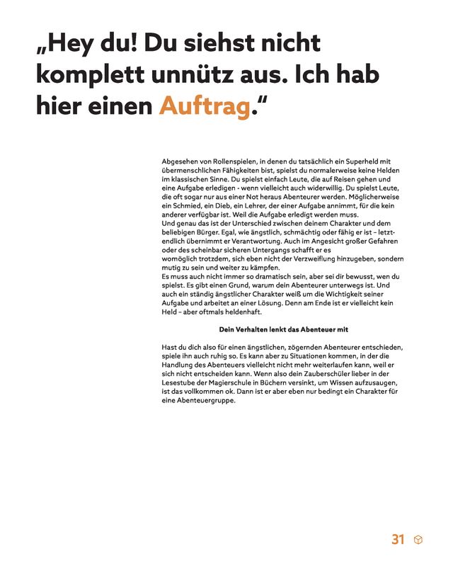 Er beinhaltet grundlegendes Wissen über Pen & Paper Rollenspiele, eine Einführung ins Rollenspiel, Tipps für die Erstellung des eigenen Charakters und das Rollenspiel in einer Gruppe. Außerdem auch eine Übersicht über bekannte Rollenspiele und Kontaktmöglichkeiten zu Pen&Paper Communities. Alles gespickt mit Beispielen zur eigenen Entfaltung mit Hinblick auf das eigene Spielerlebnis.