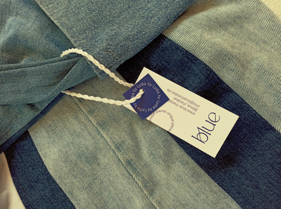 blue steht für einzigartige und handgemachte Kleidung aus bereits existierenden Jeansmaterialien (z.B. Jeanshosen). Die Marke distanziert sich von Fast Fashion und hat die Mission, Shopping etwas grüner zu gestalten. Dabei stehen eine nachhaltige Arbeitsweise und Ressourcenverwertung im Vordergrund. Mode kann eine Art individuellen Ausdrucks sein, weshalb blue beim Upcyclen zudem gerne Wünsche der Kund*innen verwirklicht.