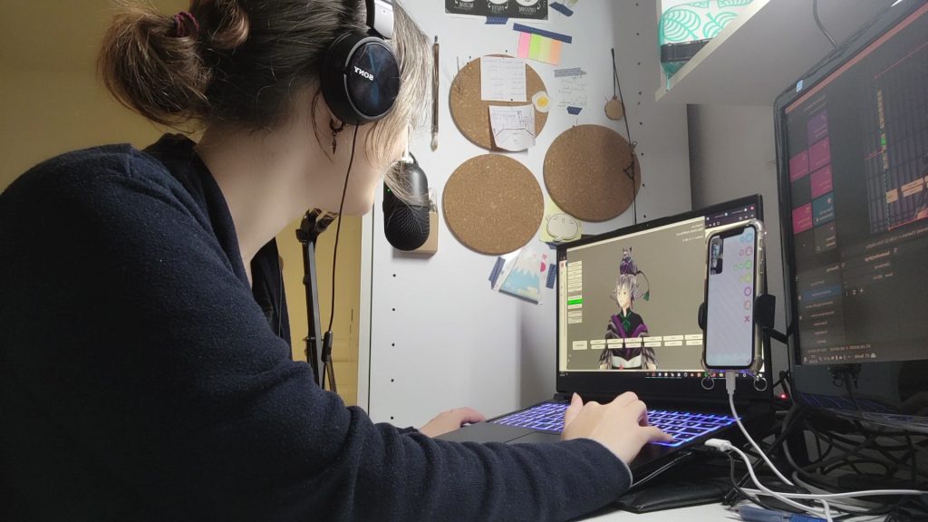 In meinem Projekt habe ich mich mit einer neuen Art des Livestreamings befasst; dem VTubing. Beim VTubing benutzt man einen Avatar, um eine virtuelle Identität zu erschaffen und sich durch diese neu zu erfinden. Während meiner Bearbeitungszeit habe ich mich primär kreativ mit der Erschaffung meines Charakters und seiner Biografie auseinandergesetzt. Außerdem habe ich mich mit den Programmen beschäftigt, welche in dieser Nische des Livestreamings bevorzugt benutzt werden. Des Weiteren ging es um das Gestalten eines Online-Auftritts auf der Plattform „Twitch* und das Erarbeiten einer Routine, die in Form einer Guideline an interessierte Neulinge weitergegeben werden kann. Uber einen Zeitraum von einem Monat bin ich dafür selbst in die Rolle eines VTubers geschlüpft, um die Vorteile und Eigenheiten so wie die Community dieser besonderen Art der Selbstverwirklichung hautnah zu erleben.