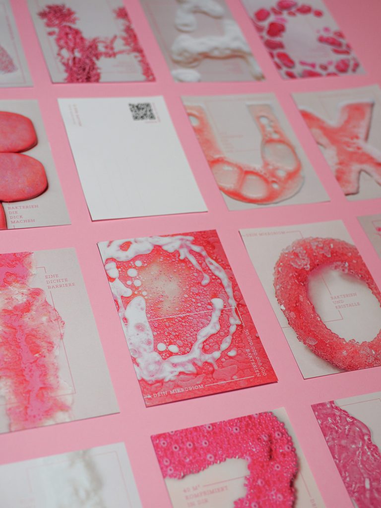 Um diese Fragen zu beantworten, werde ich die Thematik in einen typografischen Kontext einordnen. Hierfür werde ich die 26 Buchstaben des Alphabets auf eine experimentelle und spielerische Art und Weise gestalten und auf verschiedenen digitalen und analogen Medien abbilden, umso mehr Aufmerksamkeit auf die Thematik zu lenken. Hinter jedem Buchstaben verbringt sich dann ein Thema, dass das Mikrobiom betrifft und informiert. Kurzgefasst beschreibe ich das Mikrobiom von A bis Z und jeder Buchstabe ist wie ein eigenes Kapitel dazu zu verstehen.